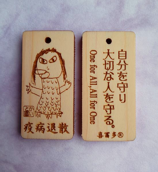 孫が描いたアマビエも木札にしました。